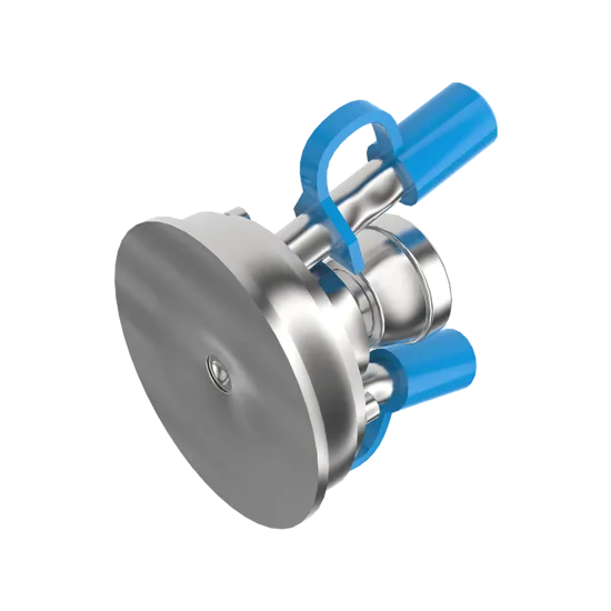 Dzięki poszerzonemu korpusowi i membranie sprzężonej z głowicą napędową, zapewnia higienę i bezpieczeństwo użytkowania. Wbudowane przyłącze CIP umożliwia mycie komory. Dostępny w wersji ręcznej lub automatycznej.